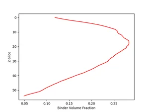 Das Verhalten von Vliesstoffen wird hauptsächlich durch die räumliche Verteilung, Orientierung, Länge, Krümmung und Mittellinie der einzelnen Fasern bestimmt. Bei Medien mit Binder sind auch der Volumen-/Gewichtsanteil und die räumliche Verteilung des Binders von großer Bedeutung. Mit GeoDict 2019 können Binder und Fasern in CT-Bilder segmentiert werden, selbst wenn sie die gleichen Grauwerte haben.