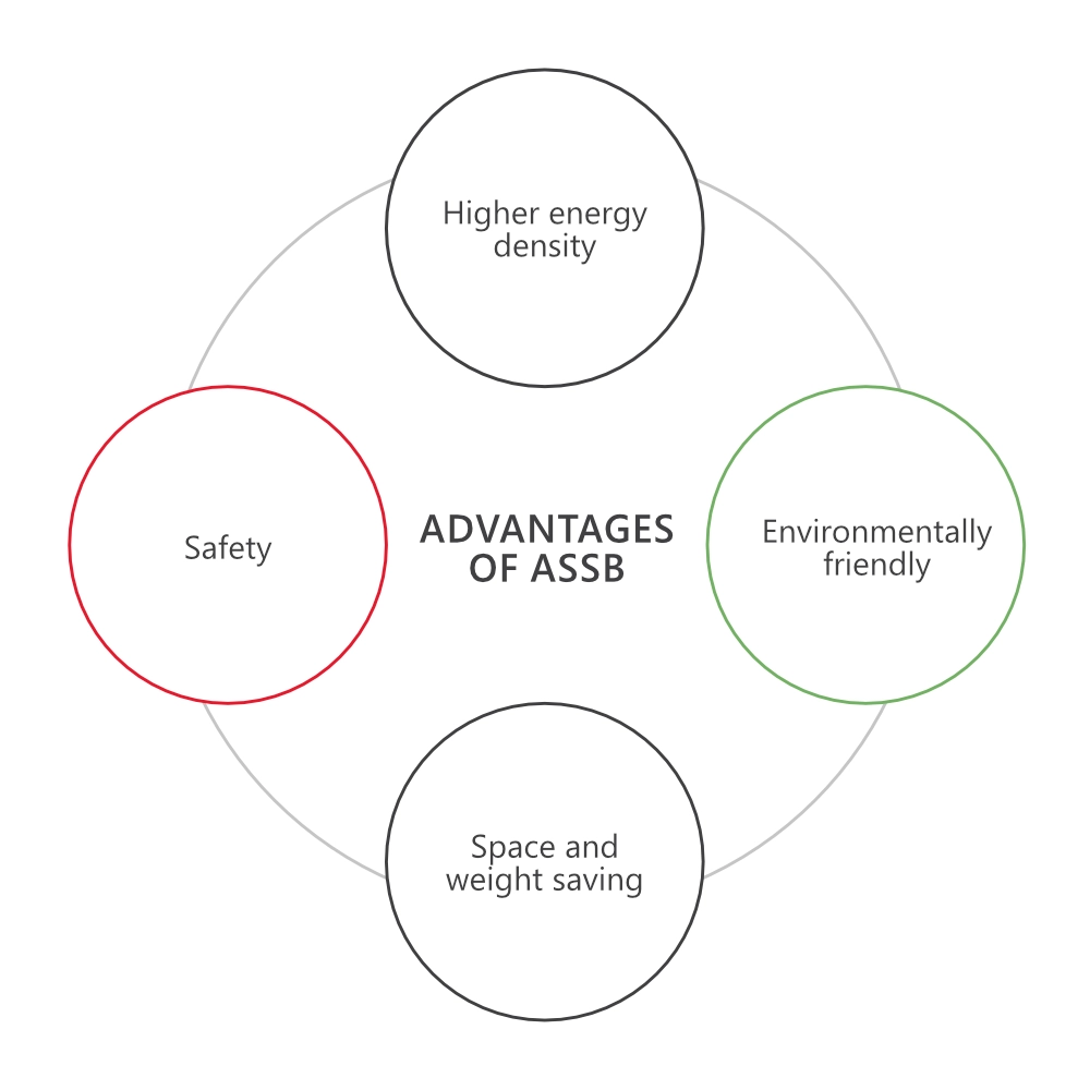 - Higher energy density: By using higher energy materials such as metallic lithium, ASSBs promise higher energy densities of up to 500 Wh/kg combined.
