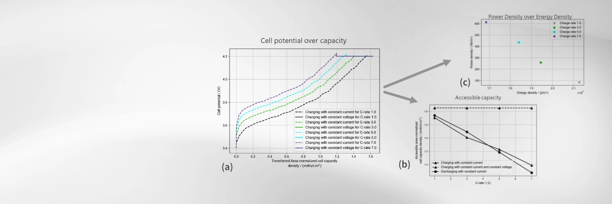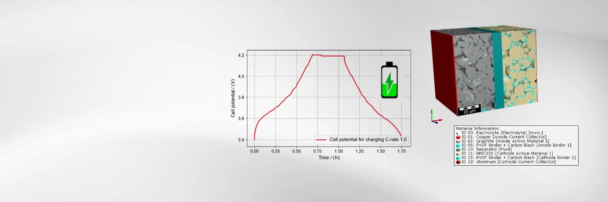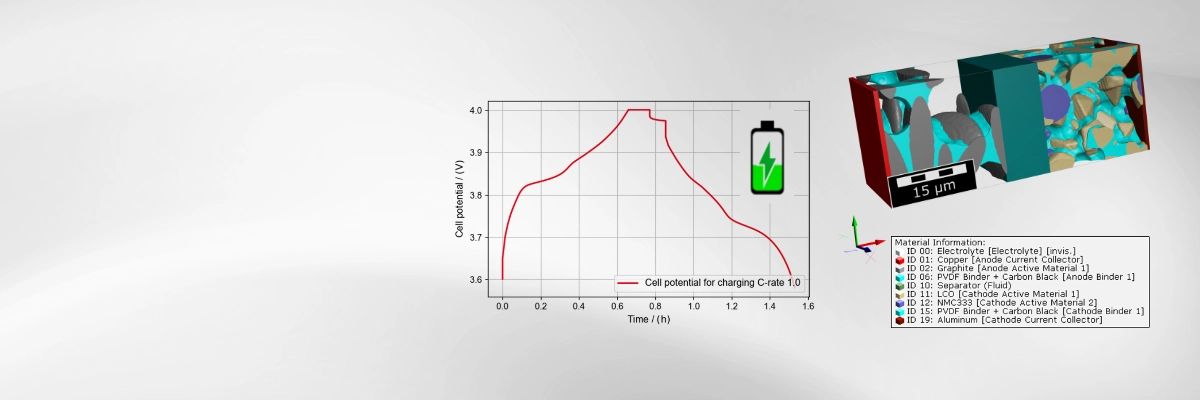 Fast charging of batteries reduces the accessible cell capacity. The GeoDict software offers a distinctive capability to simulate this capacity change with varying charge rate.