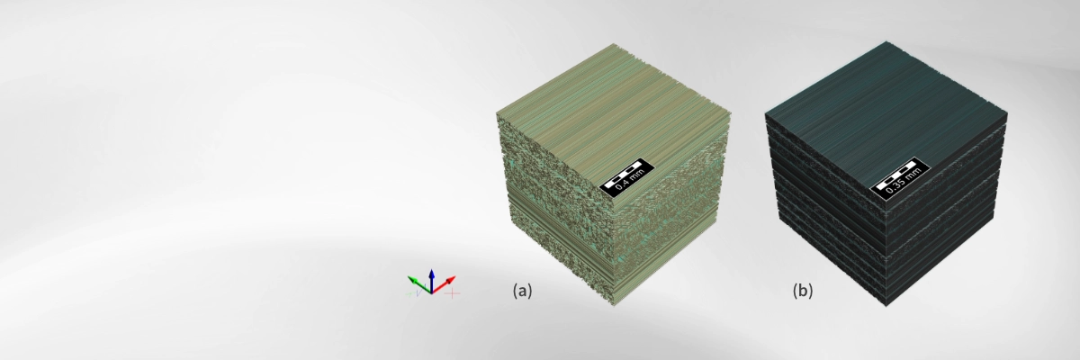 Accurate modeling of multilayer laminate microstructures is essential for reliably predicting mechanical performance and accelerating material design. GeoDict enables the creation of realistic digital microstructures from parametric inputs and connects them to advanced simulation tools, such as the ElastoDict module, for structural analysis and effective property evaluation.