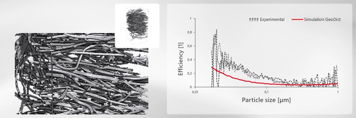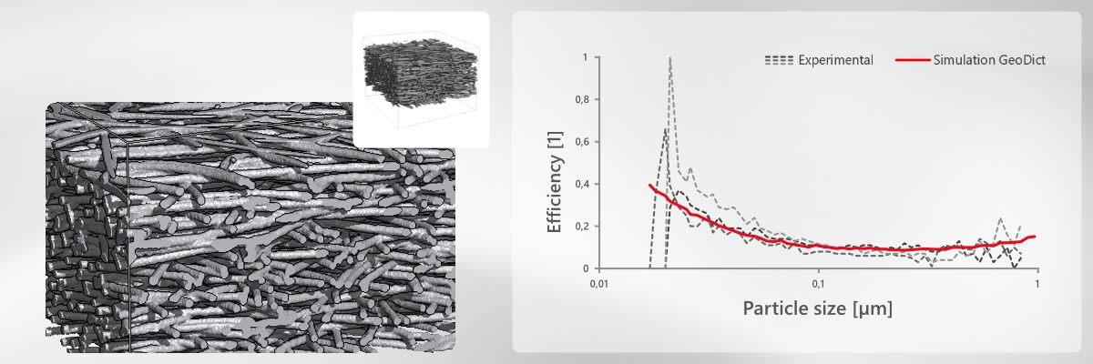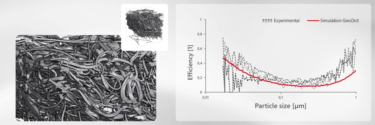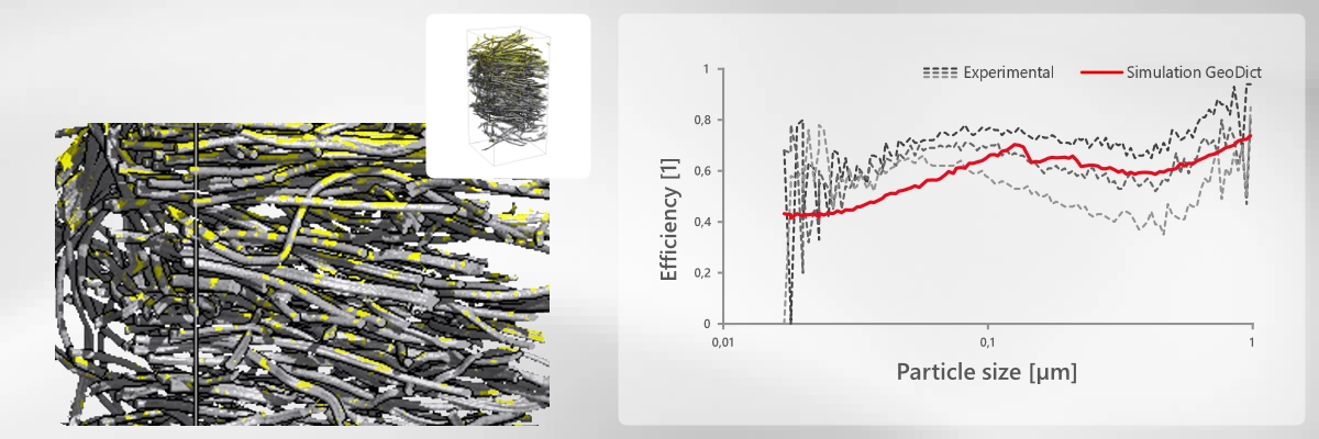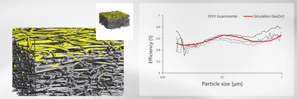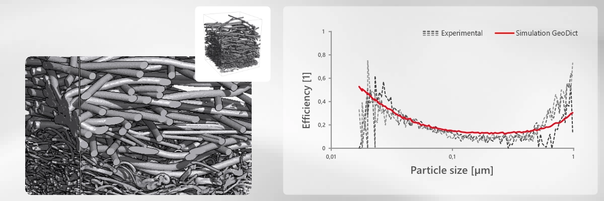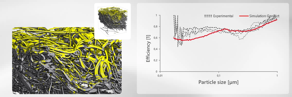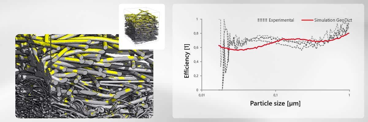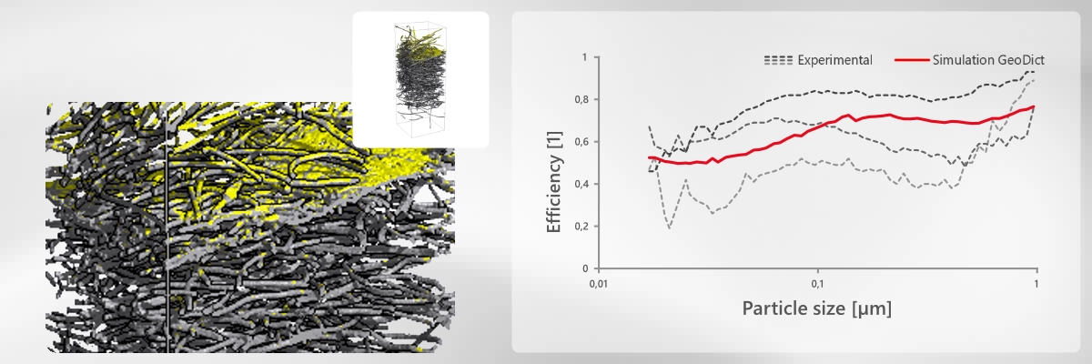 GeoDict’s functionality can be adapted to model electret filters, which are commonly used in industry because of their excellent filtration performance. These filters work through electrostatic interactions between charged fibers and particles. Accurate performance prediction requires specialized simulation tools. The ElekSim initiative, supported by Germany’s Central Innovation Program for SMEs, is developing a tailored simulation platform for electret filters. This will allow for more effective and precise design and optimization of filter media. In partnership with IUTA, the project incorporates and validates various particle loading conditions and fiber discharge behaviors.