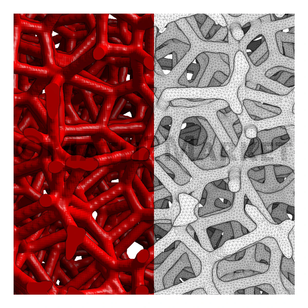 MeshGeo converts material microstructures in GeoDict formats to a STL mesh. The surface triangulation can be applied to generated microstructure models or be done directly on grey value images of imported CT-scans.