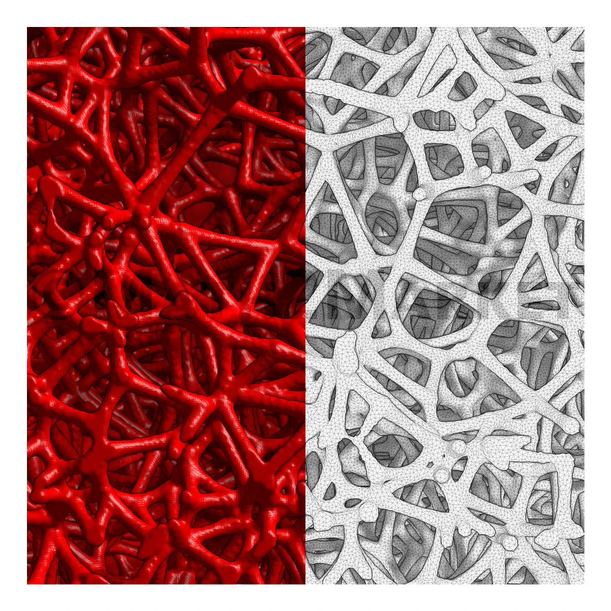 - MeshGeo can be used to create meshes of microstructures such as nonwoven (FiberGeo), woven (WeaveGeo, foams (FoamGeo), ceramics (GrainGeo), composites, etc. generated with modules for digital material design.