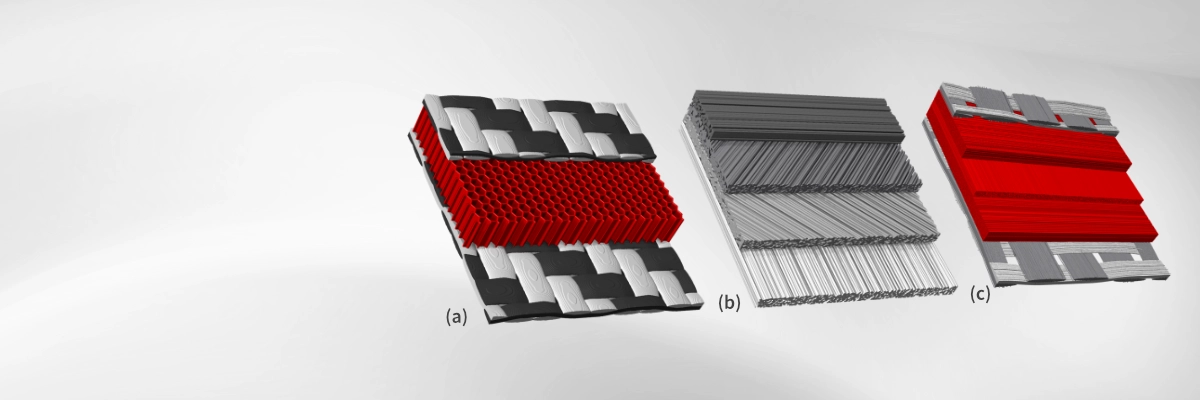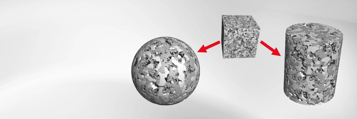 Typical applications include modeling multilayer filter media, sand control screens, and laminated composites made of carbon fibers with different orientations. The module can also be used to construct sandwich structures, combine cathode and anode geometries with a separator layer for battery simulations, or to stitch together scans of large samples that cannot be captured in a single scan.