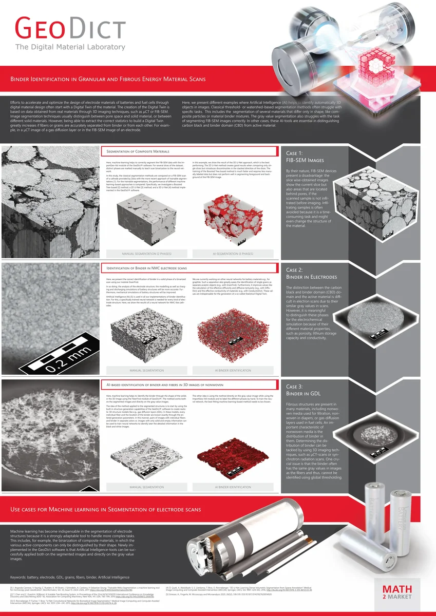 Carbon black and binder domain (CBD) and active material are often difficult to distinguish in scans of electrode structures, although they have widely different material properties. CBD is porous, cannot store lithium and has a higher electronic conductivity. Thus, being able to separate them in scans is an important step towards improving the: