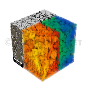 - The structure is rebuilt in GeoDict. This so-called statistical digital twin mimics the macroscopic behavior of the material.